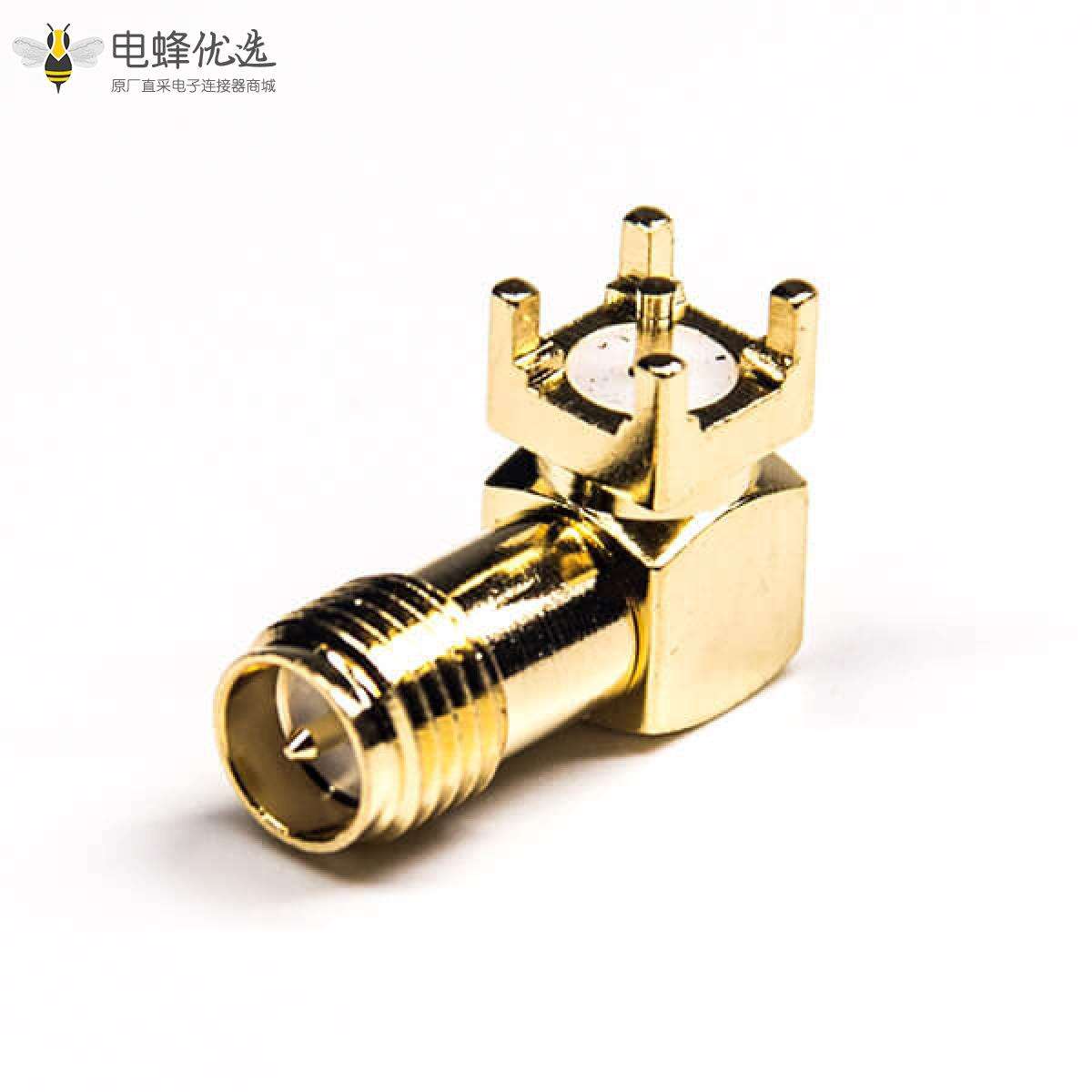 SMA连接器,接PCB,反极母头,弯式,50欧姆,镀金;