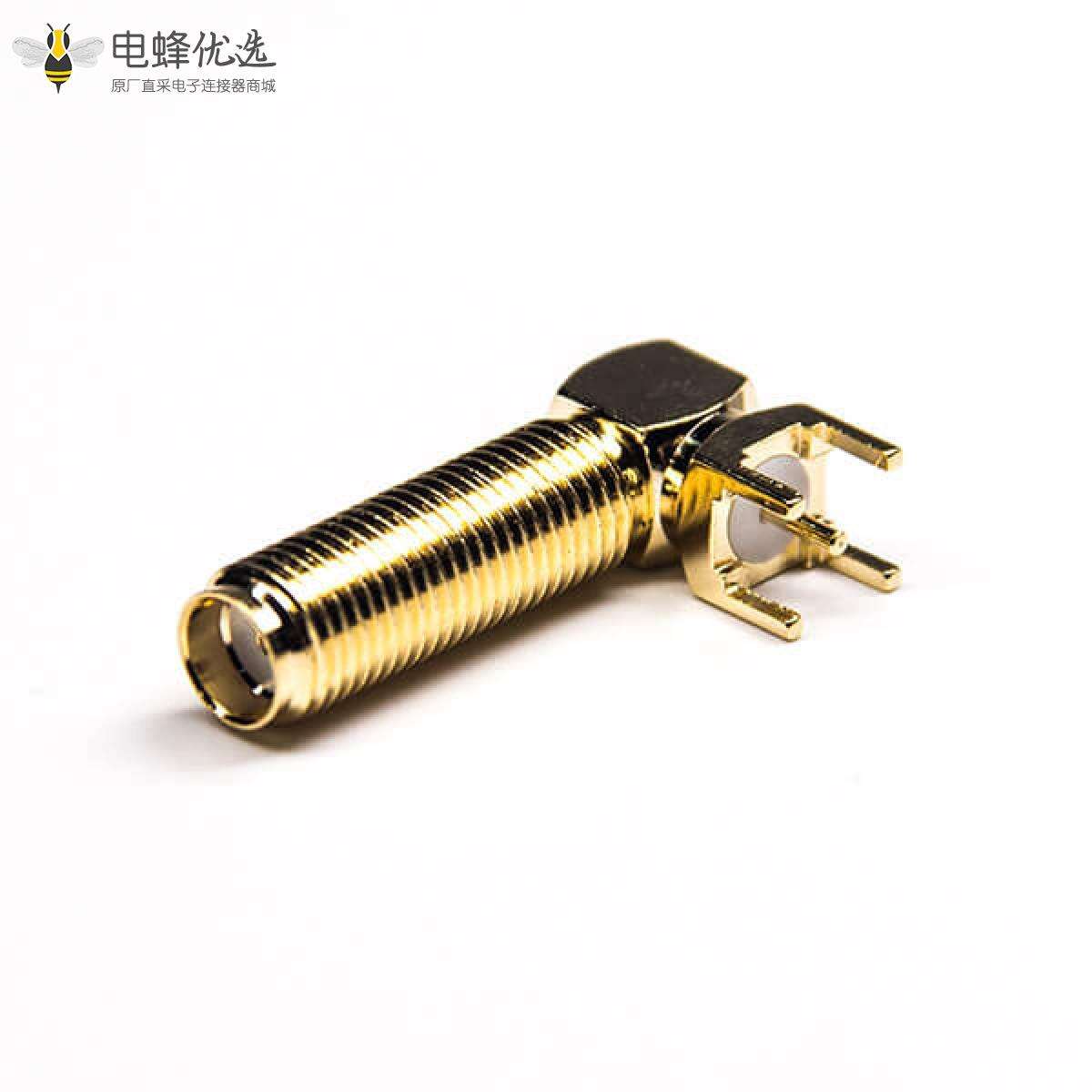 SMA连接器,母头,弯式,穿孔,PCB板,50欧姆,镀金;