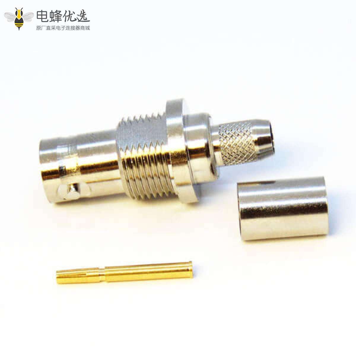 - BNC连接器,母头,直式,穿墙,压接,75Ohm,镀镍;
