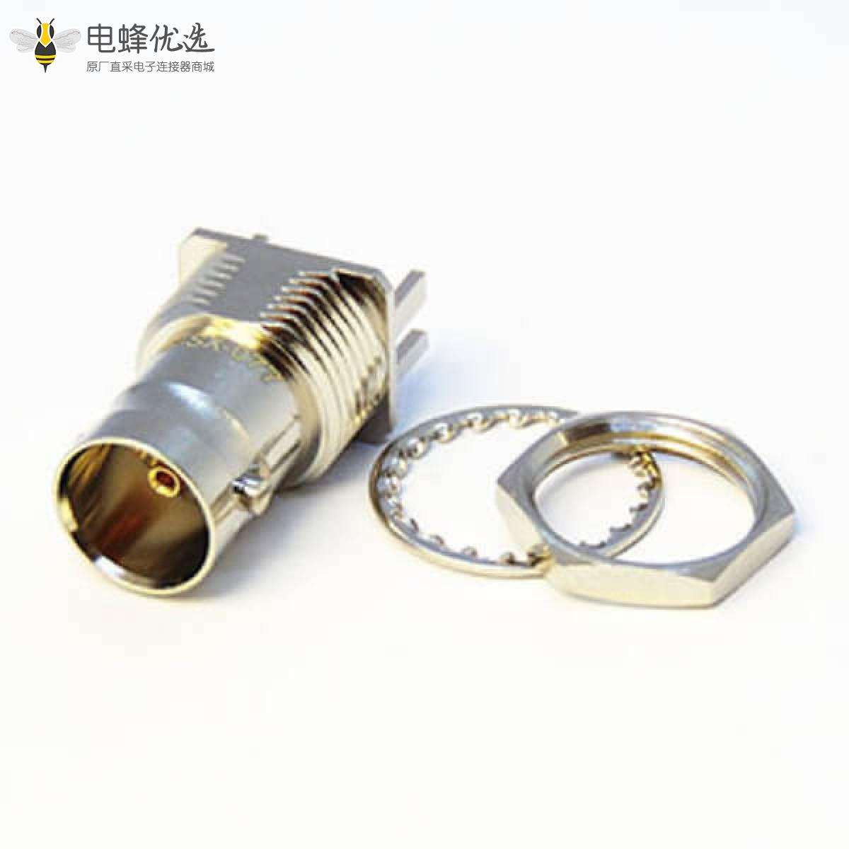 BNC接头75欧姆母头穿墙卡板式接PCB板2.4mm镀镍