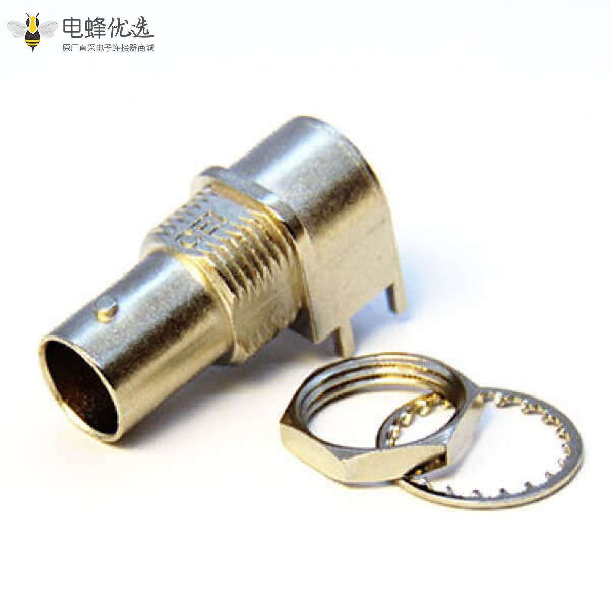 - BNC连接器,母头,弯式,穿墙,插板,镀镍,75Ohm;