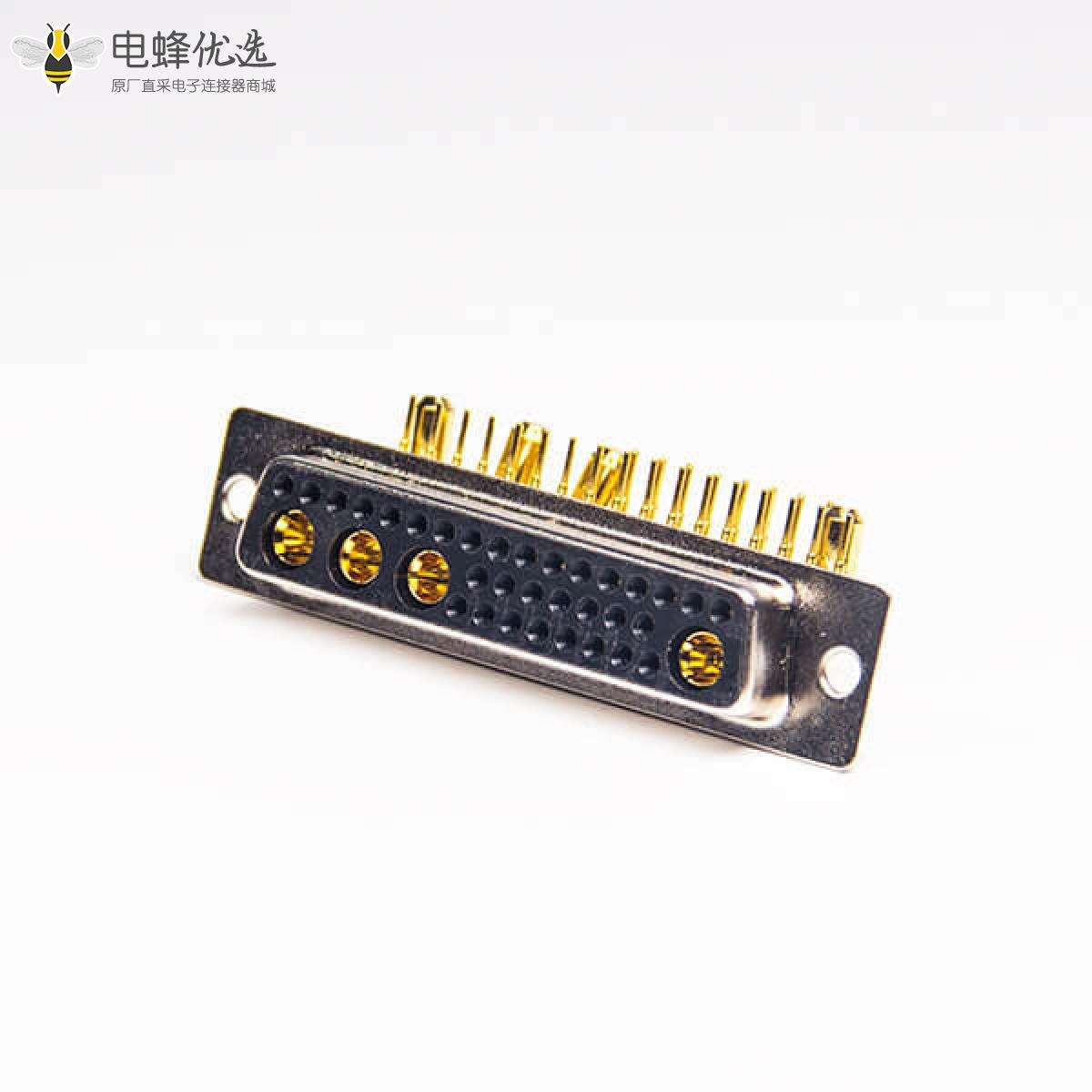 - 混合型D-sub,大电流,母头,接PCB板,穿孔式,车针,镀镍,弯式,90度,36W4;