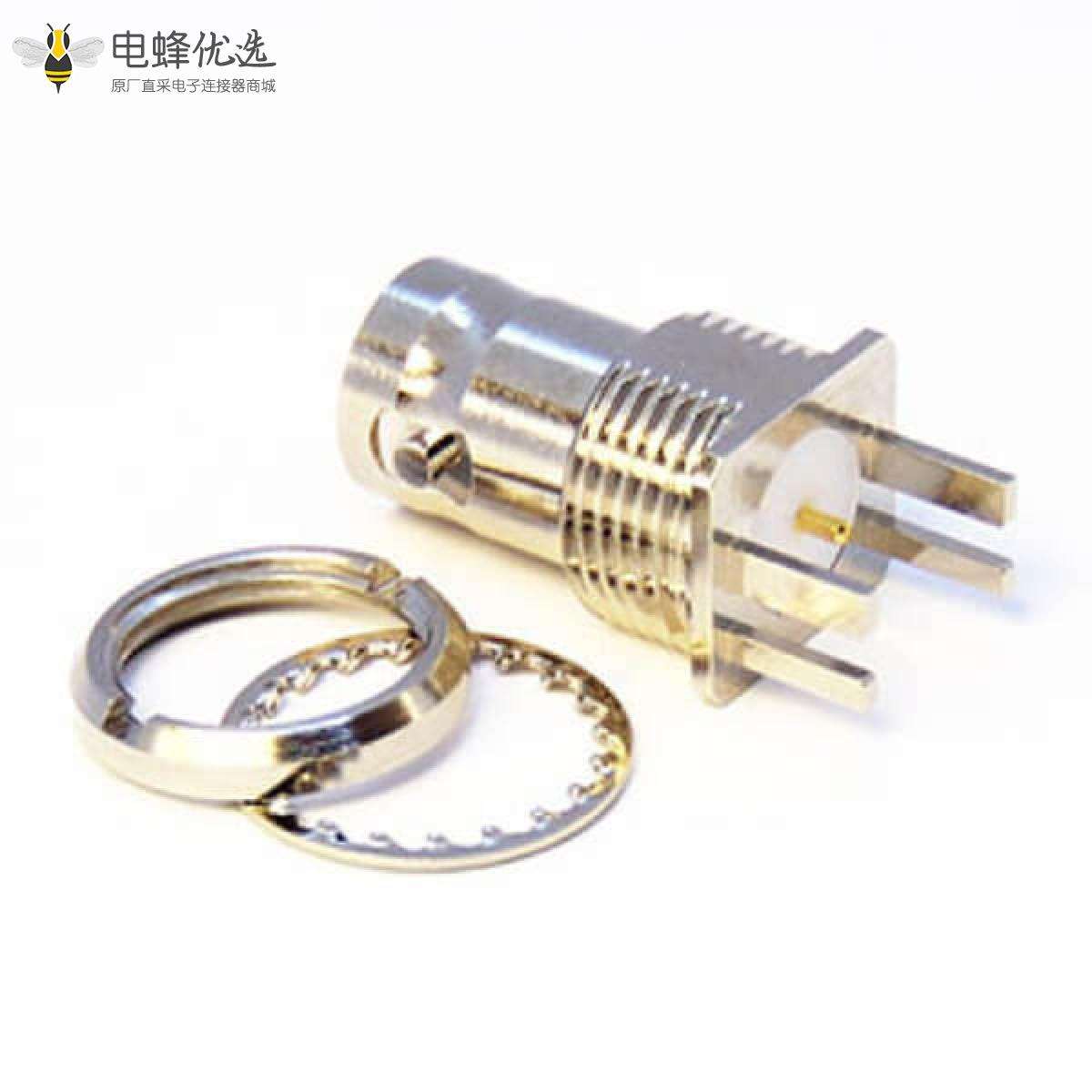 - BNC连接器, 母头, 直式, 板端插座, 接PCB板, 75欧姆, 镀镍;
