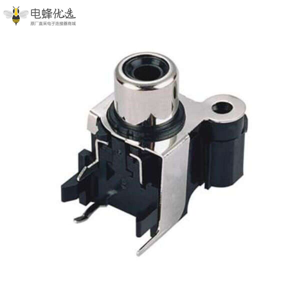 音响RCA接口母座黑素弯式90度插板