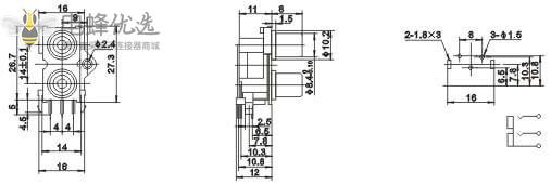 2RCA接口母头电视机顶盒音频线75欧母镀镍插座