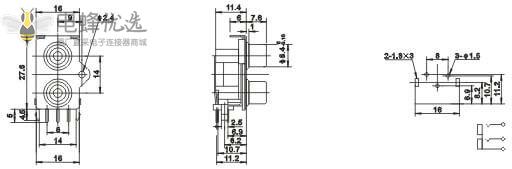 2RCA母转接头双口镀镍90度插座接板音频接头