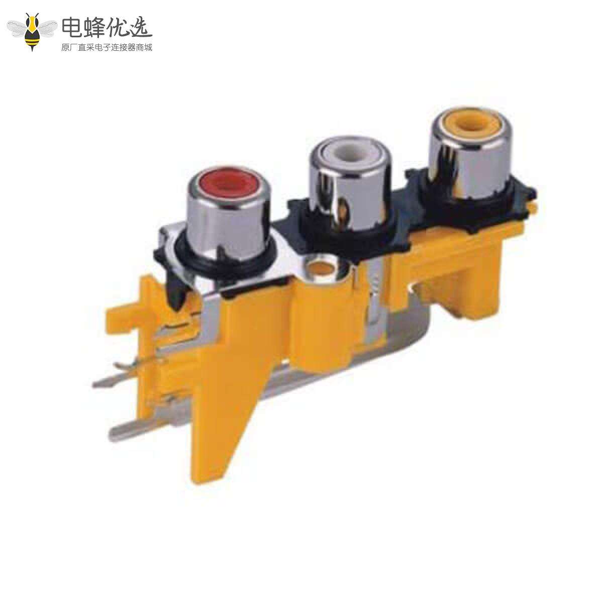 RCA弯头黄色外壳3孔1pin弯式插板镀镍接头