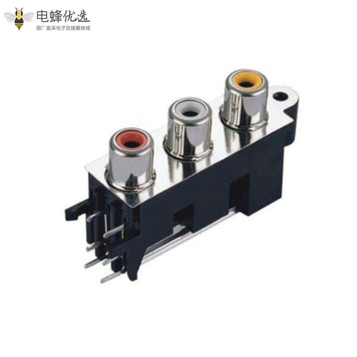 RCA母音响接头3口弯式母头插板75ohm镀镍接头