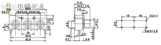三口RCA母座子直式镀金插板音频接头
