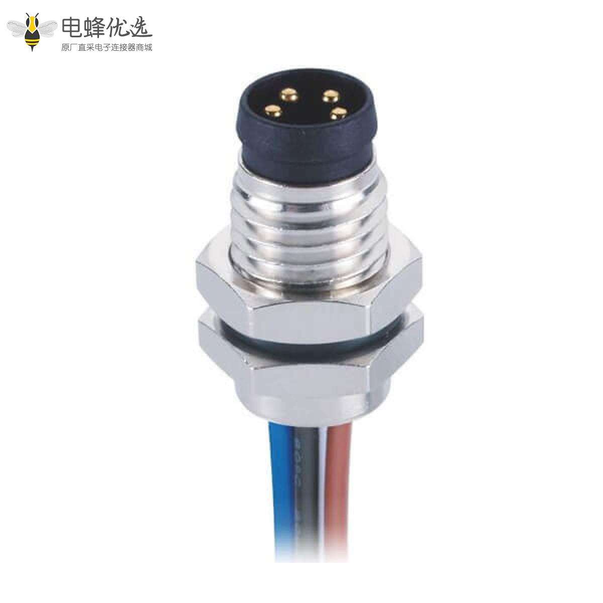 M8, A编码, 4芯,板端插座, 公, 直头, 线材, 焊接式, 前锁板;