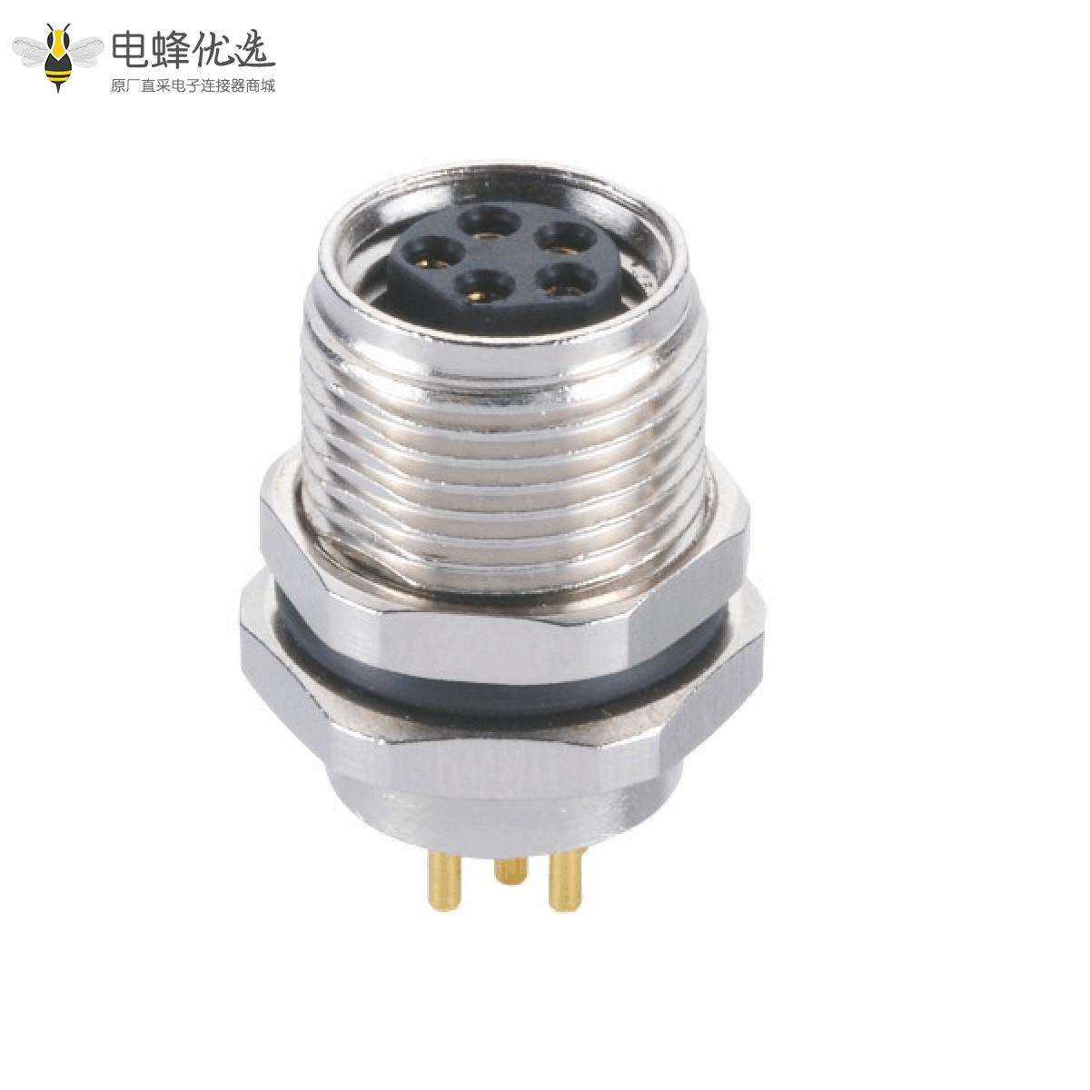 - M8, B编码, 5芯,板端插座, 母, 直头, 接PCB板, 前锁板;