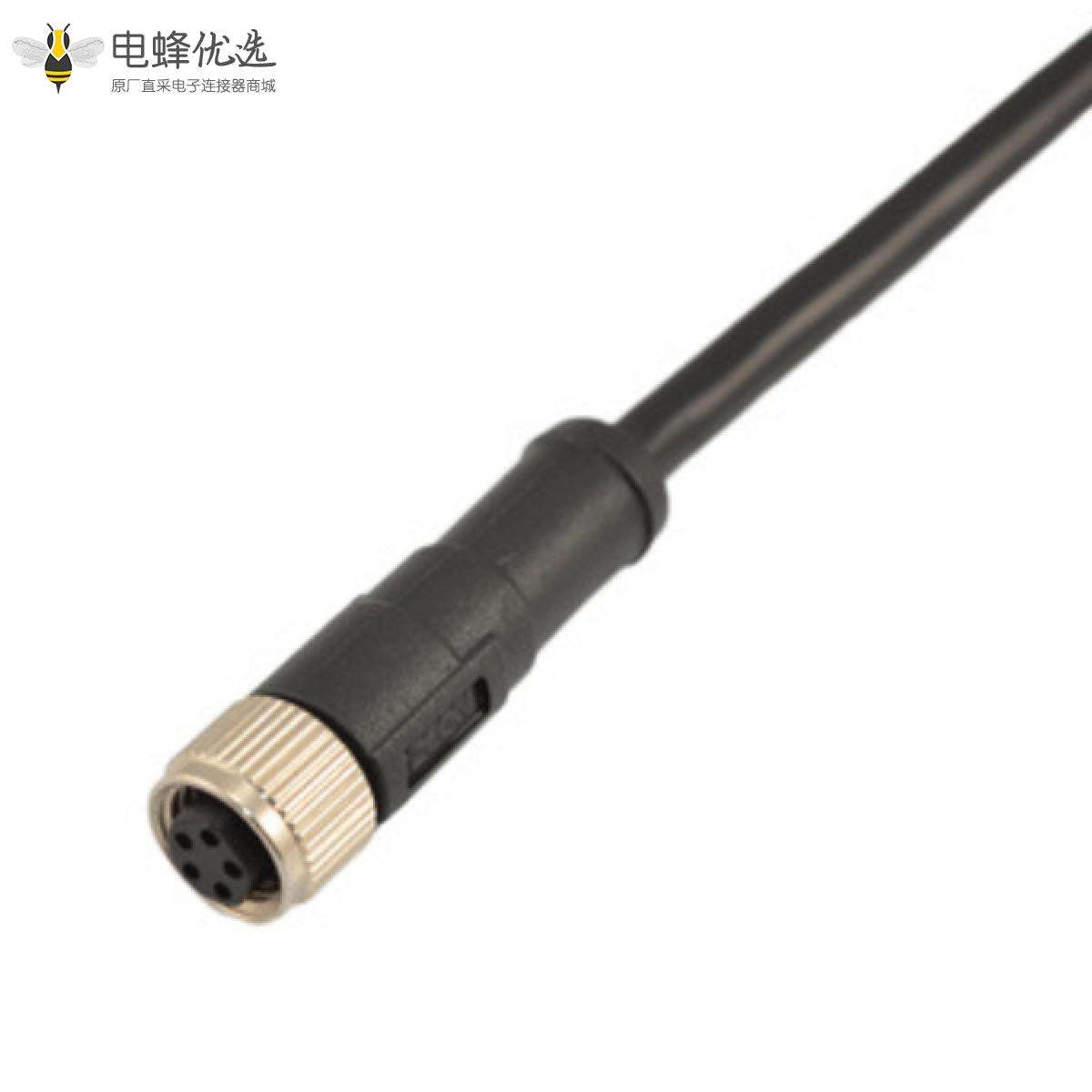M8, B编码, 5芯,线束, 单边线, 母, 接线, 焊接, 不带屏蔽;
