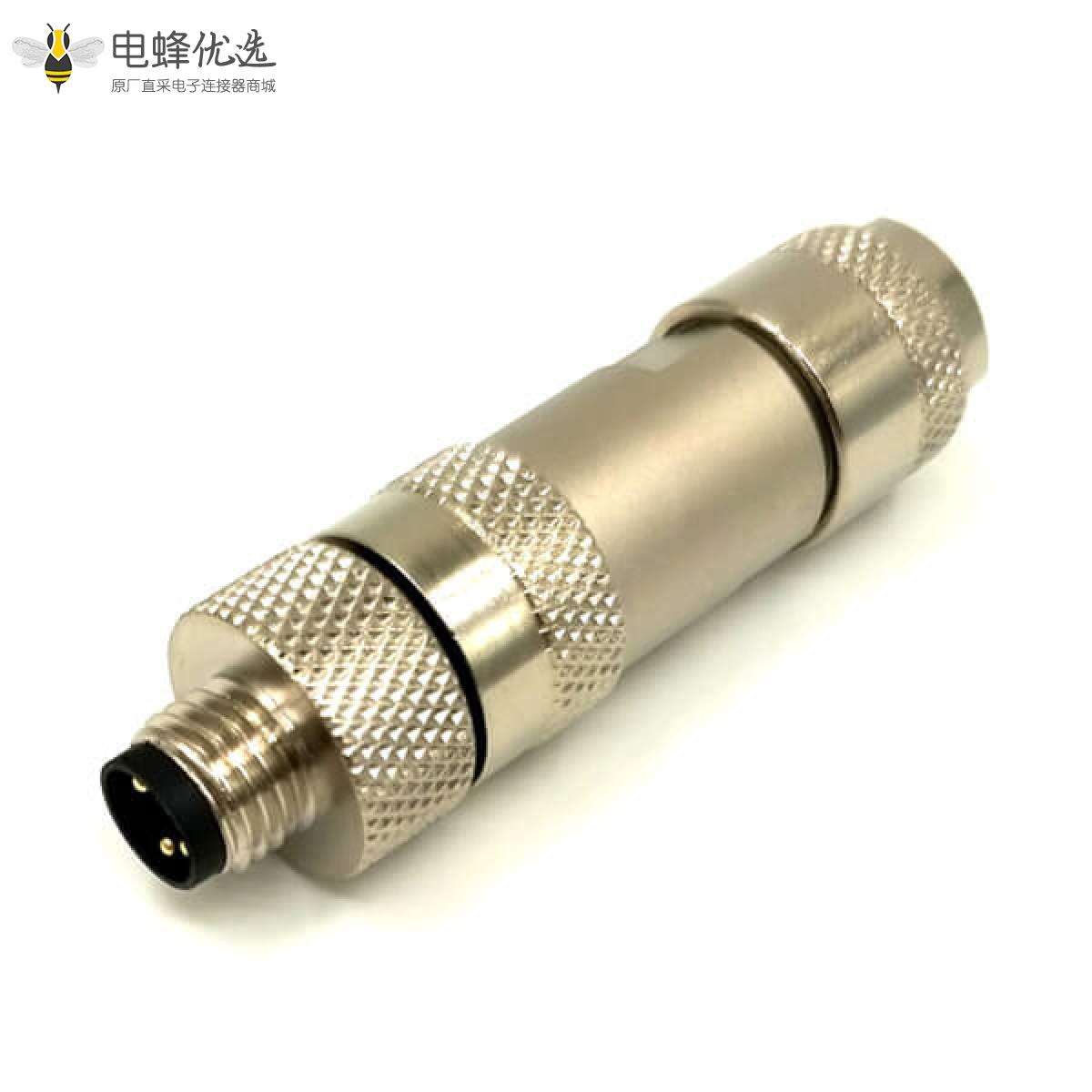 - M8, A编码, 3芯,组装接头, 公, 直头, 接线, 螺丝锁线, 不带屏蔽;