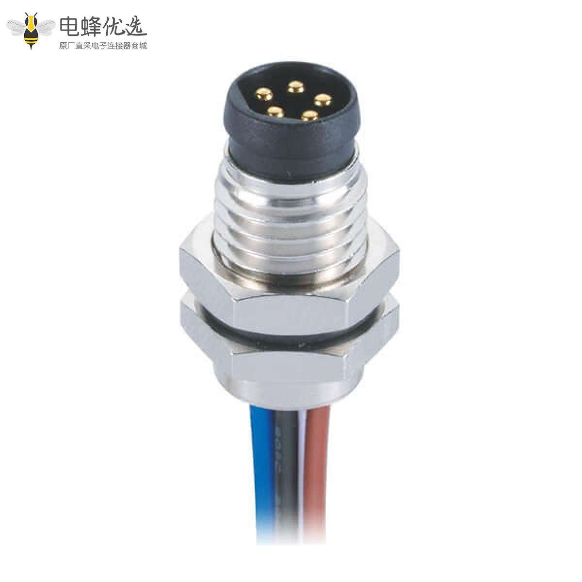 M8, B编码, 5芯,板端插座, 公, 直头, 线材, 焊接式, 前锁板;