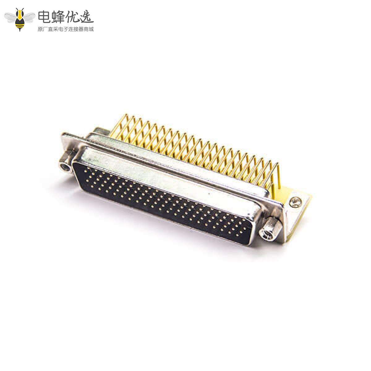 - 车针型D-sub,插头,104针,5排,单端口,直角型,车针,镀金,通孔,面板安装,前铆螺母,IP20,无滤波;