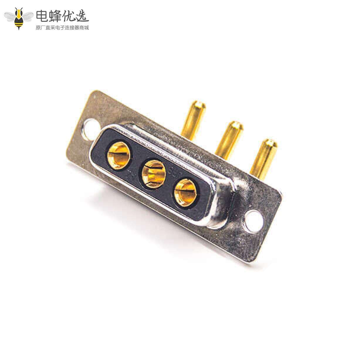 - 混合型D-sub连接器,插座,3W3,1排,单端口,直角型,车针,镀金,通孔,面板安装,无螺纹,IP20,无滤波;