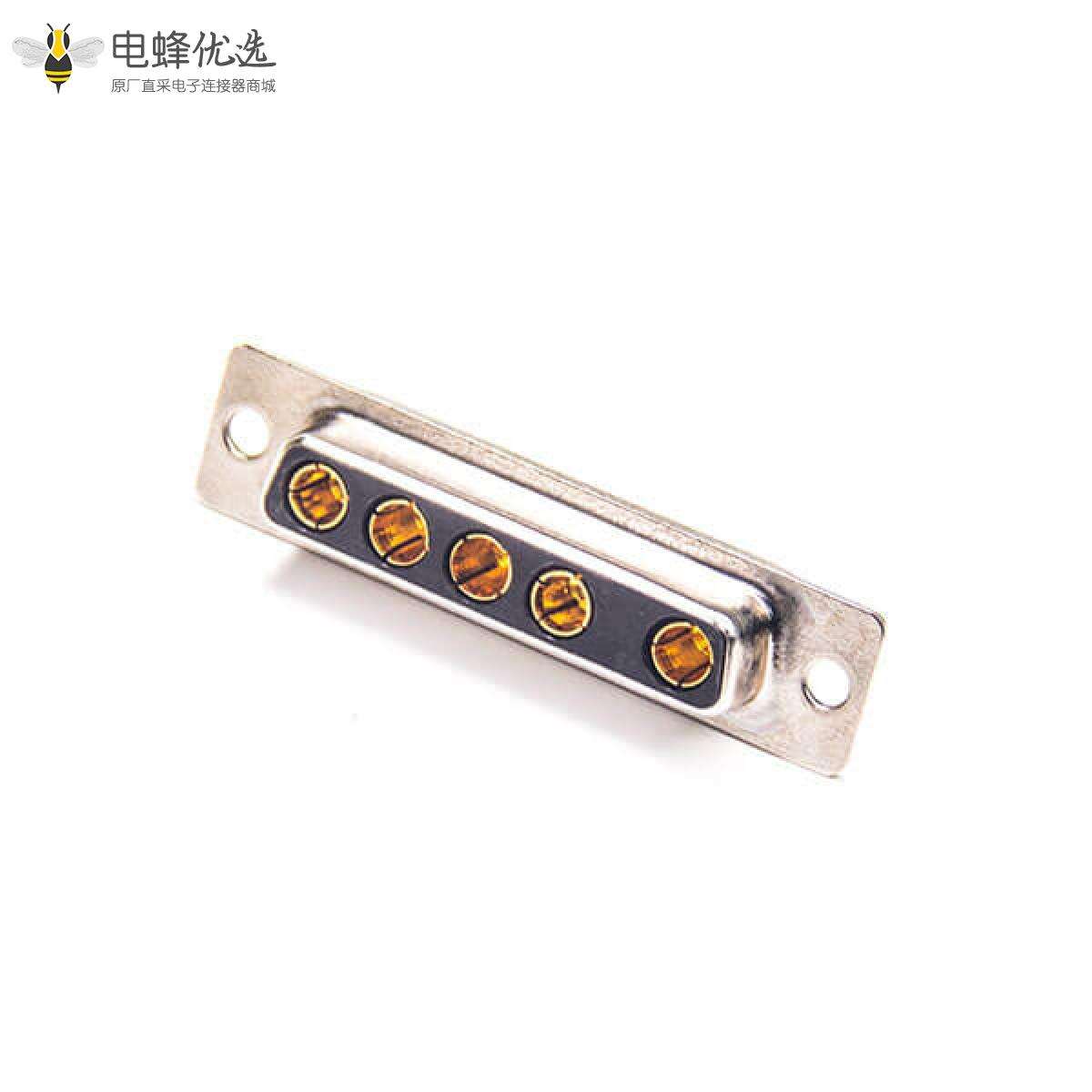 - 混合型D-sub连接器,插座,5W5,1排,单端口,直型,车针,镀金,焊杯,电缆,无螺纹,IP20,无滤波;