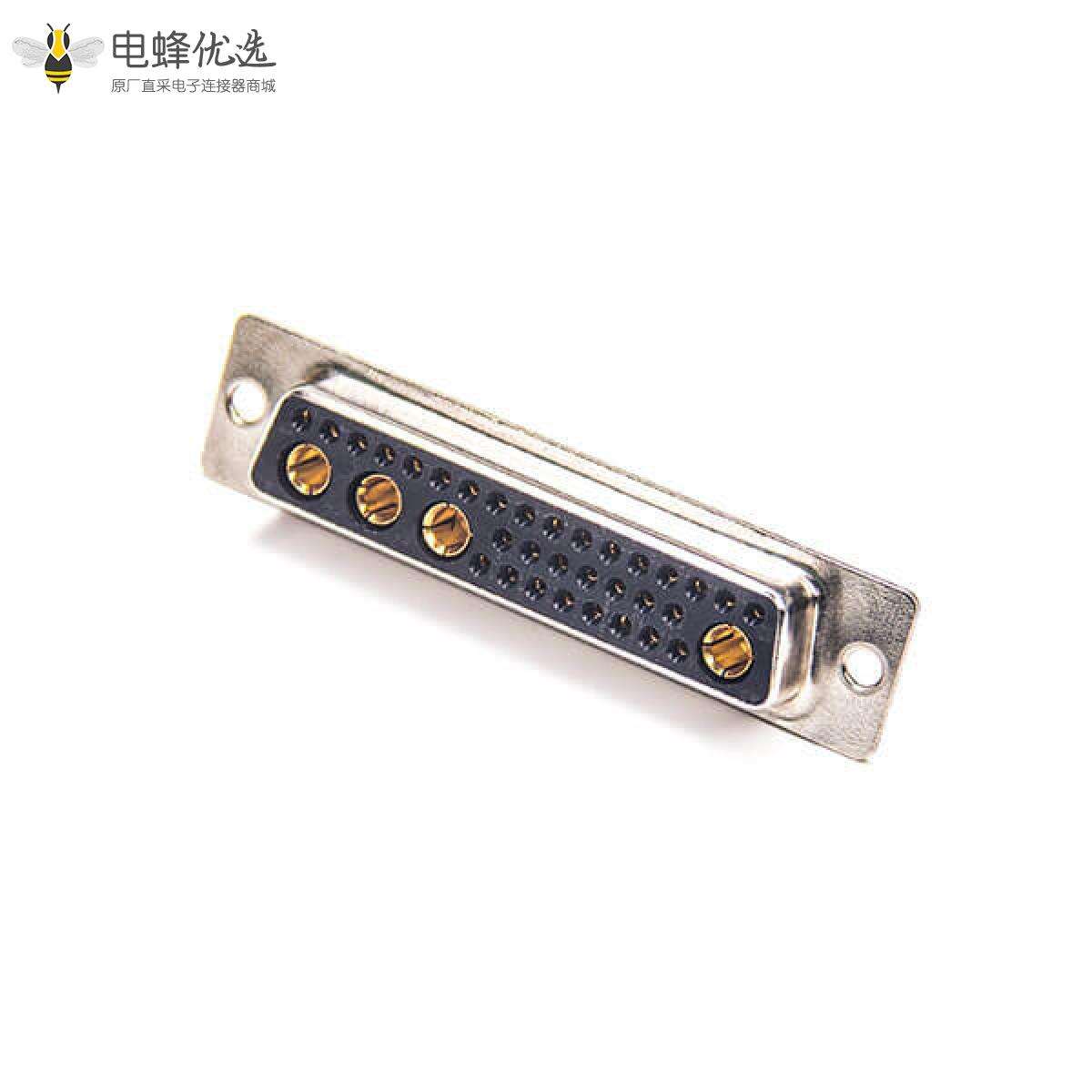 - 混合型D-sub连接器,插座,36W4,3排,单端口,直型,车针,镀金,通孔,面板安装,无螺纹,IP20,无滤波;