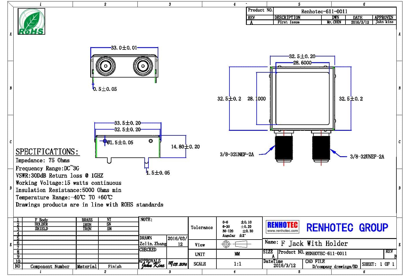 - f连接器,pcb板,母头,75欧,穿墙,直式,屏蔽罩;