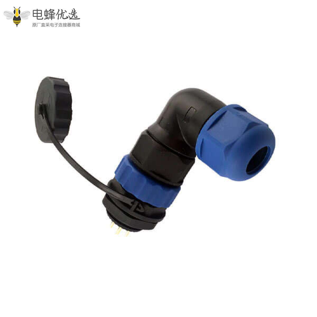 SP21系列,弯角,常规款,后螺母插座和弯式插头,焊接中心针,6芯;