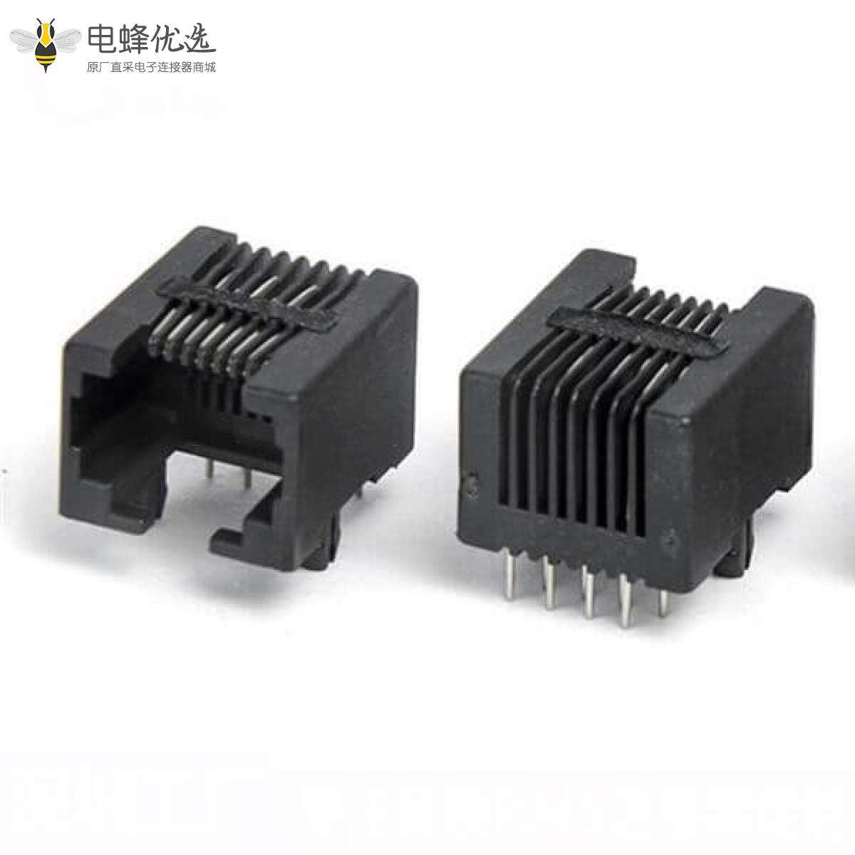 - RJ45连接器,插座,8P8C,单口,1*1,单层,弯式90°,镀金,插孔,PCB板安装,非屏蔽,不带灯,不带滤波器,不带POE,不防水;