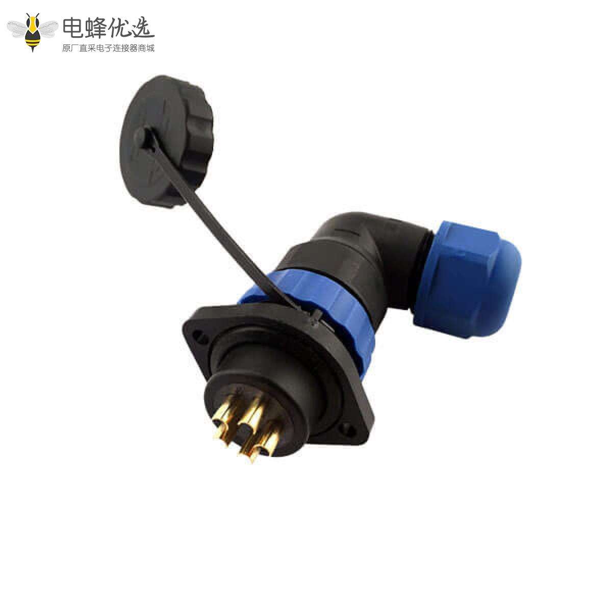 SP21系列,弯角,常规款,2孔法兰插座和插头,焊接中心针,2芯;