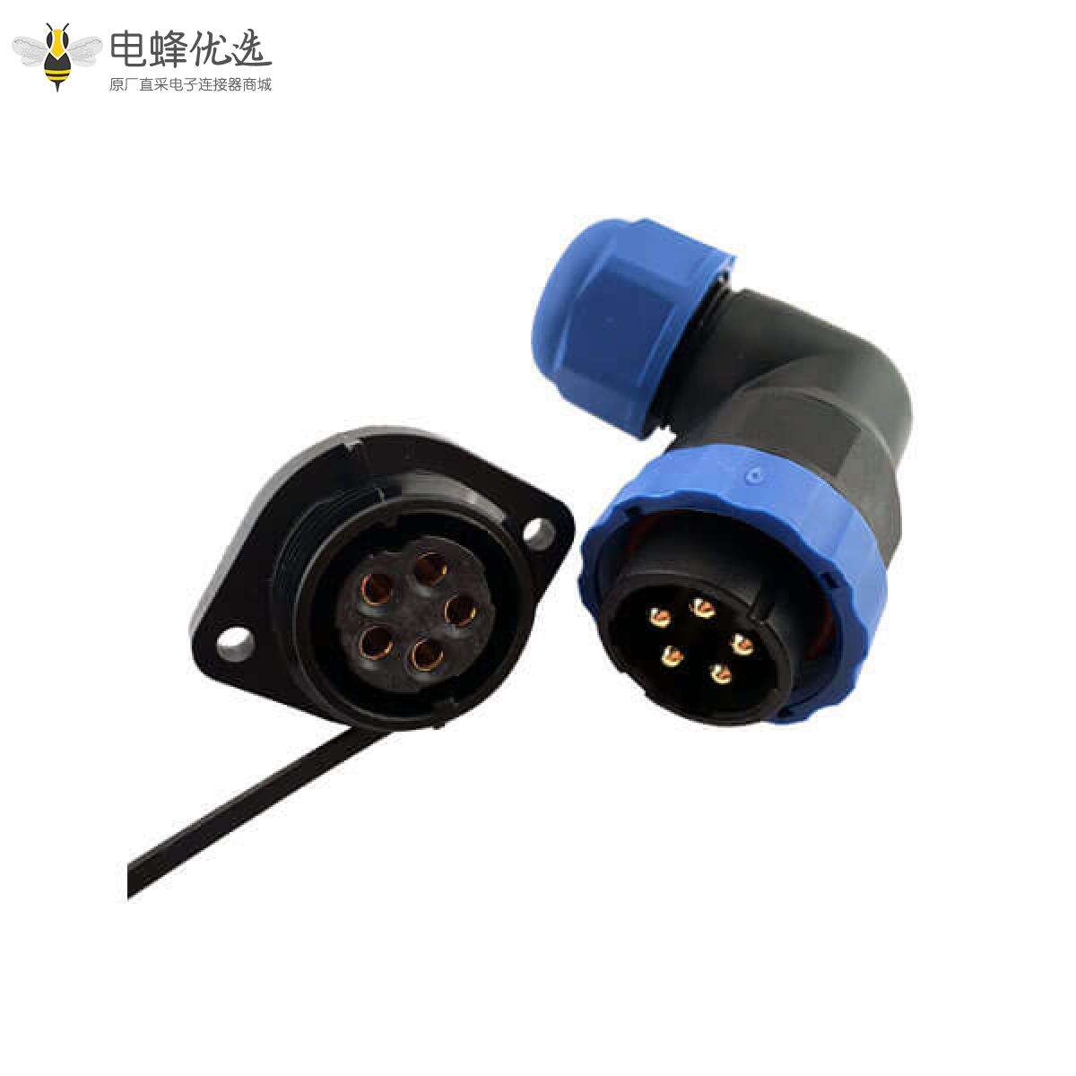 SP21系列,弯角,常规款,2孔法兰插座和插头,焊接中心针,10芯;