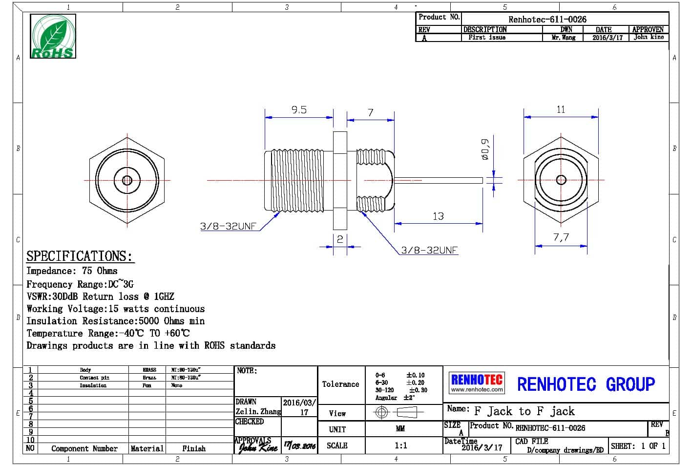 - 中心接触电阻: ≦ 10 mΩ (Milliohms max.)