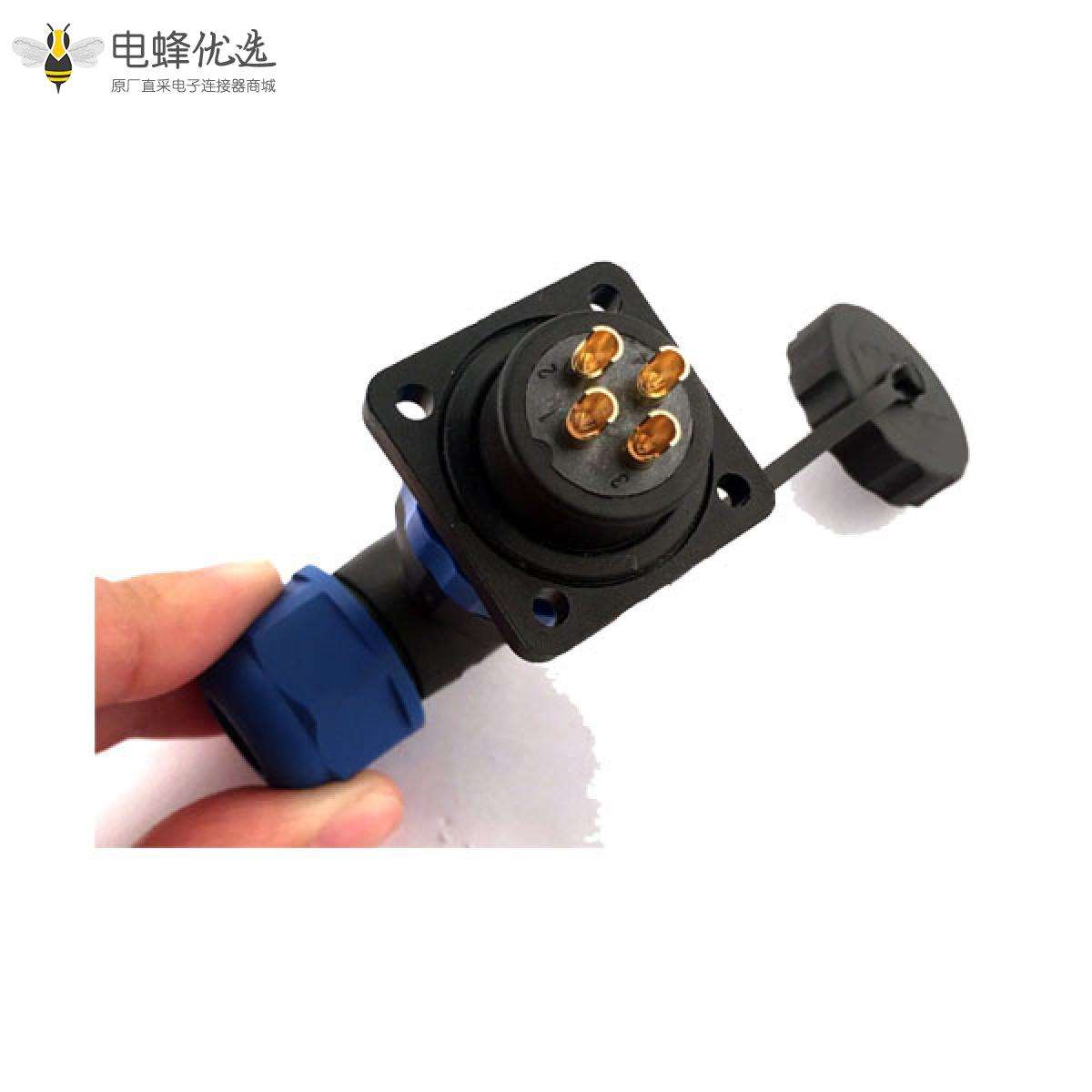 SP21系列,弯角,常规款,4孔法兰插座和弯式插头,焊接中心针,9芯;