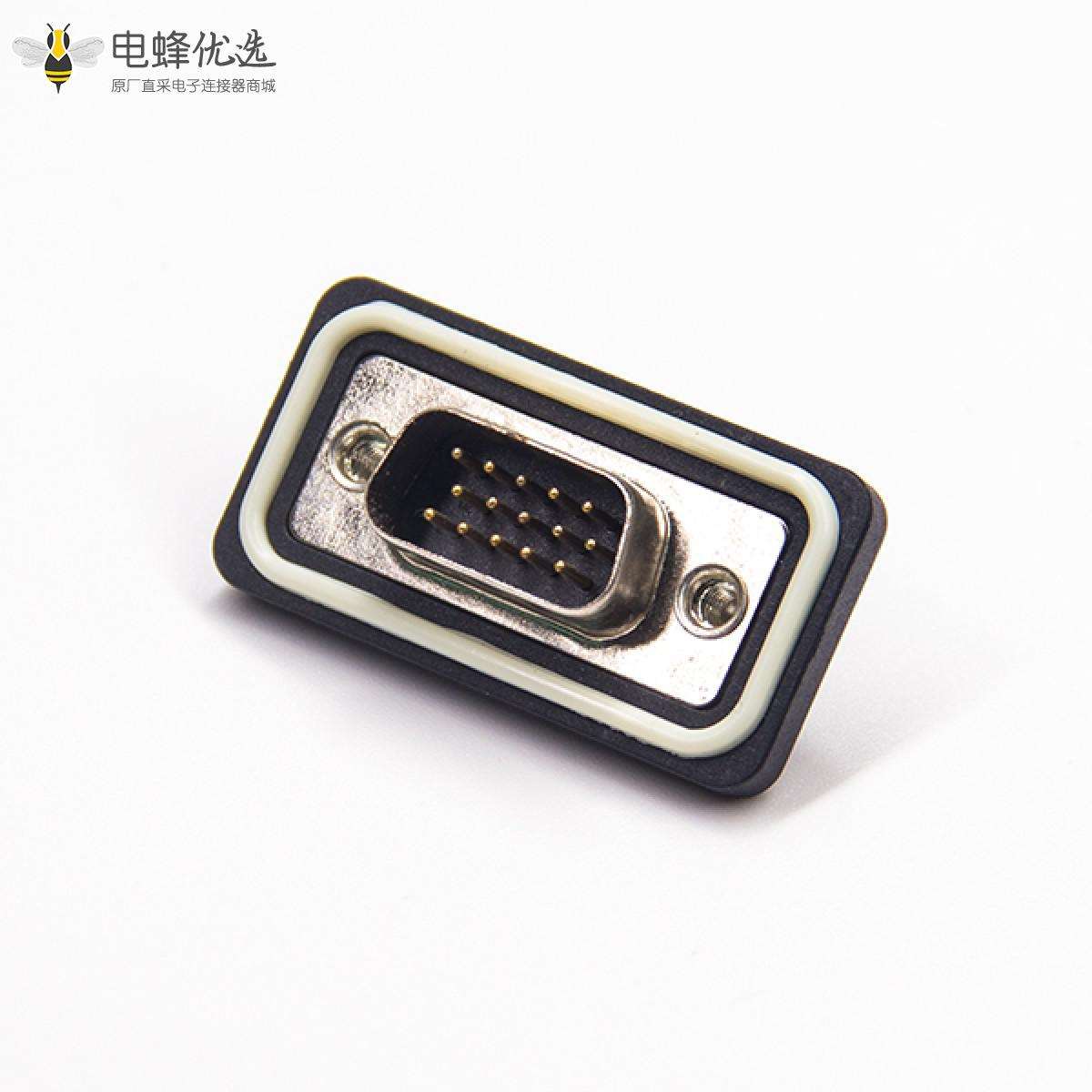 - 防水D-sub,插头,15针,3排,单端口,直型,车针,镀金,垂直PCB安装,后铆螺母,IP67,不带滤波;