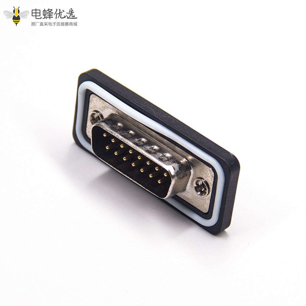 - 防水D-sub,插头,15针,2排,单端口,直型,车针,镀金,焊杯,电缆,后铆螺母,IP67,不带滤波;