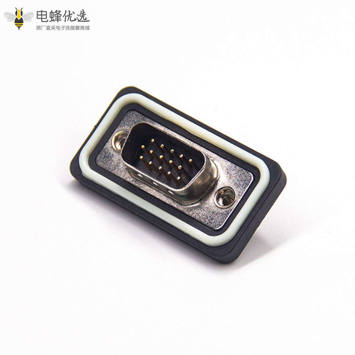 - 防水D-sub,插头,15针,3排,单端口,直型,车针,镀金,焊杯,电缆,后铆螺母,IP67,不带滤波;