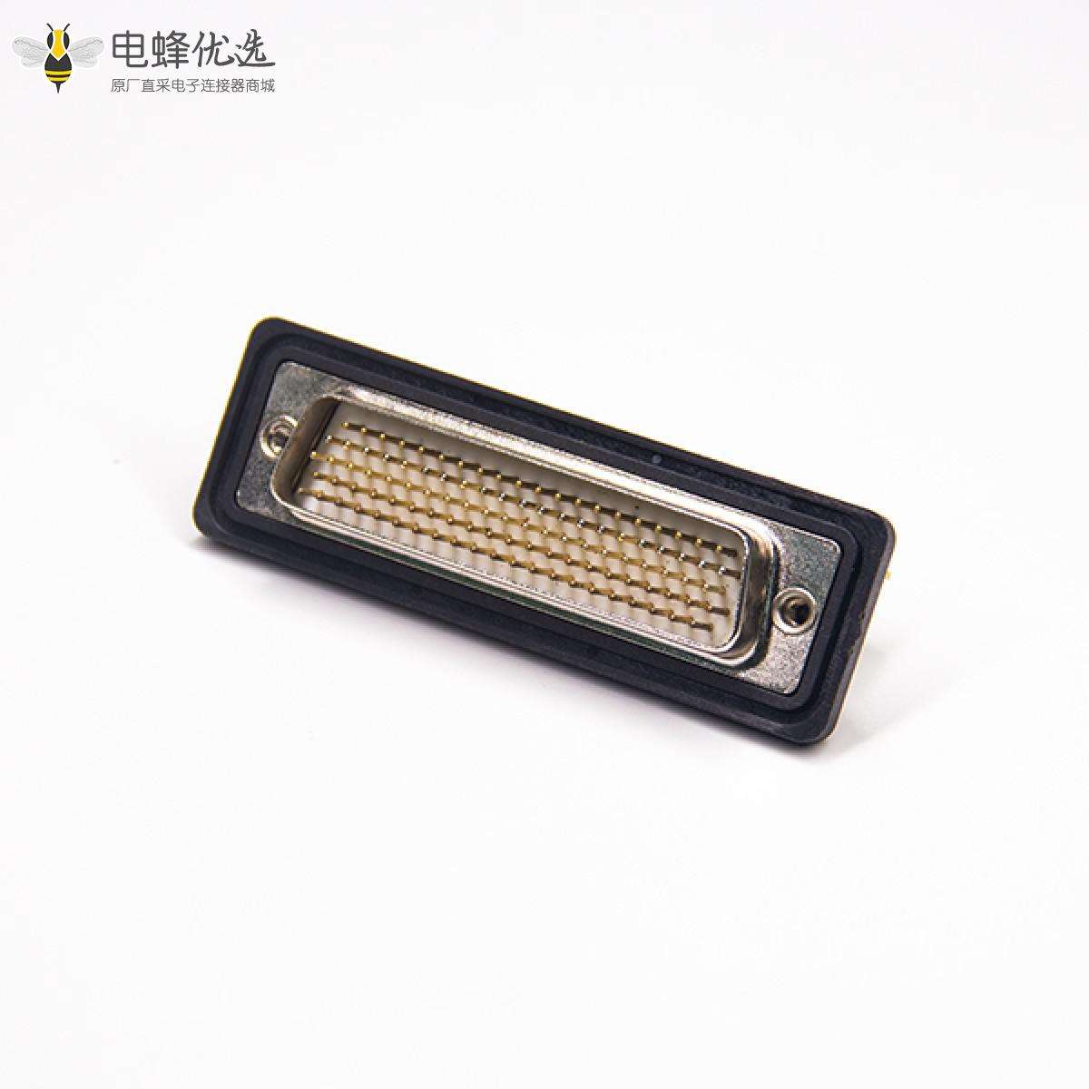 - 防水D-sub,插头,104针,5排,单端口,车针,镀金,直角,PCB安装,后铆螺母,IP67,不带滤波;