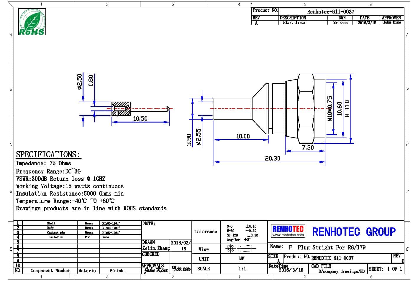 - f连接器,同轴线缆,公头,75欧,直式,RG58;