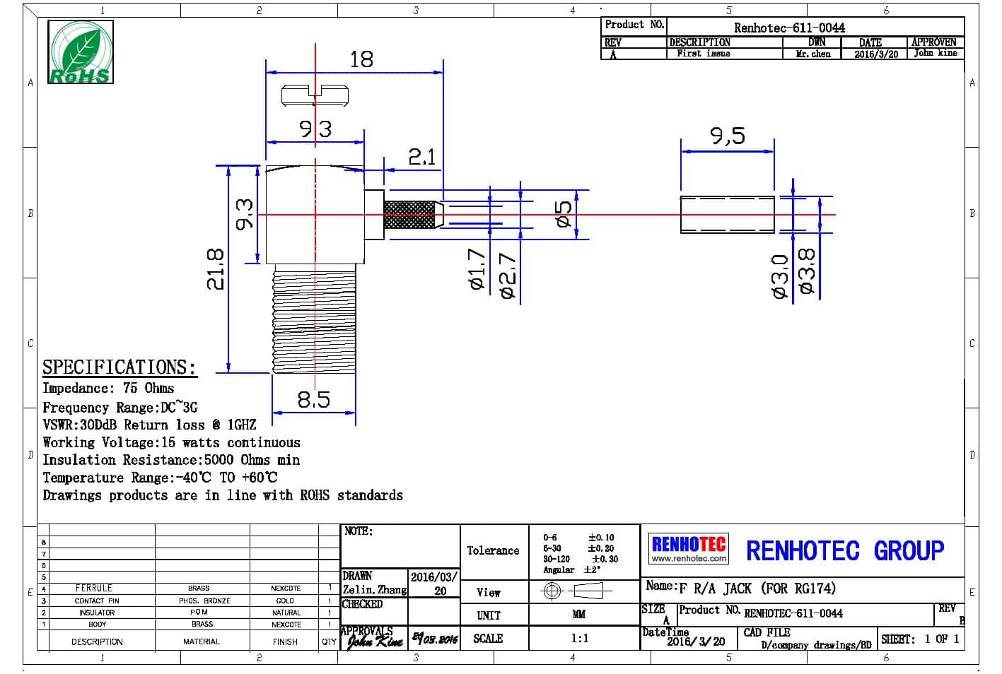 - 阻抗:75 ohm