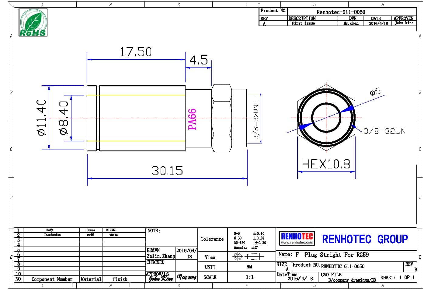- 中心接触电阻: ≦ 10 mΩ (Milliohms max.)