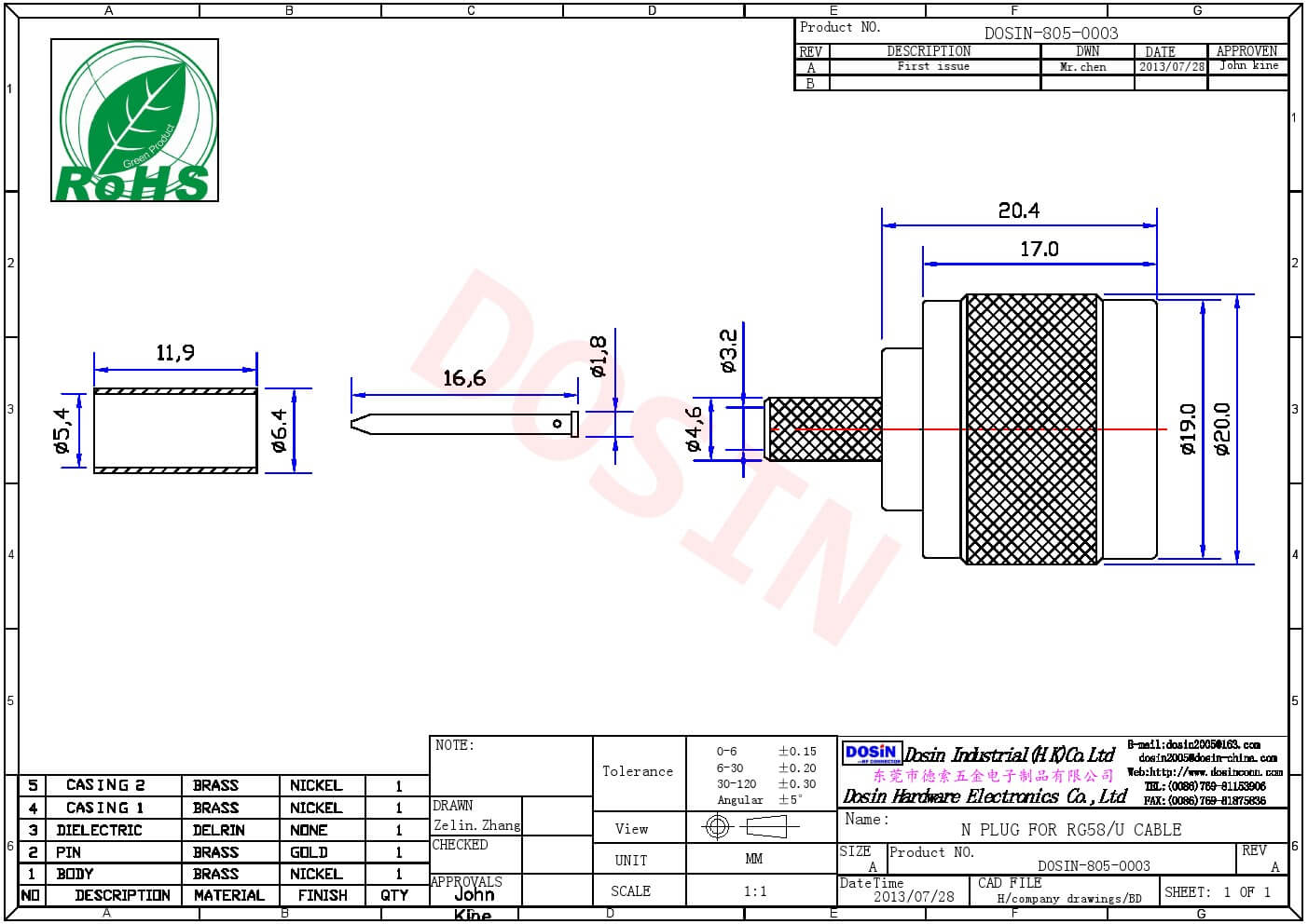 - 高性能连接器,频率范围达0到11GHz,阻抗50欧姆;