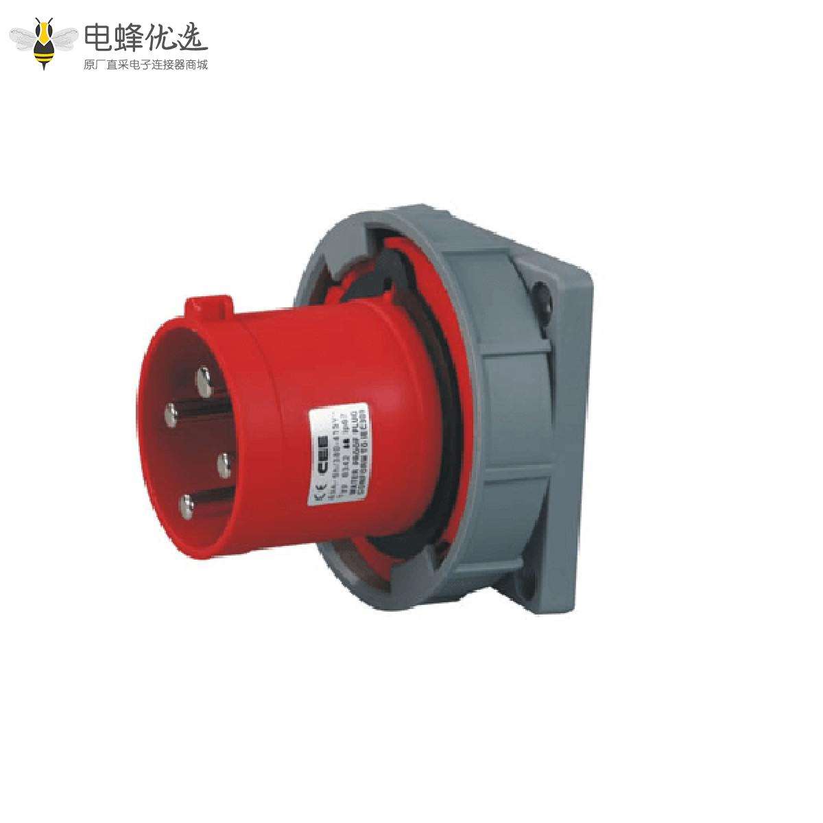 4芯,63A,380V-415V,暗装公插座,IP67,红色;
