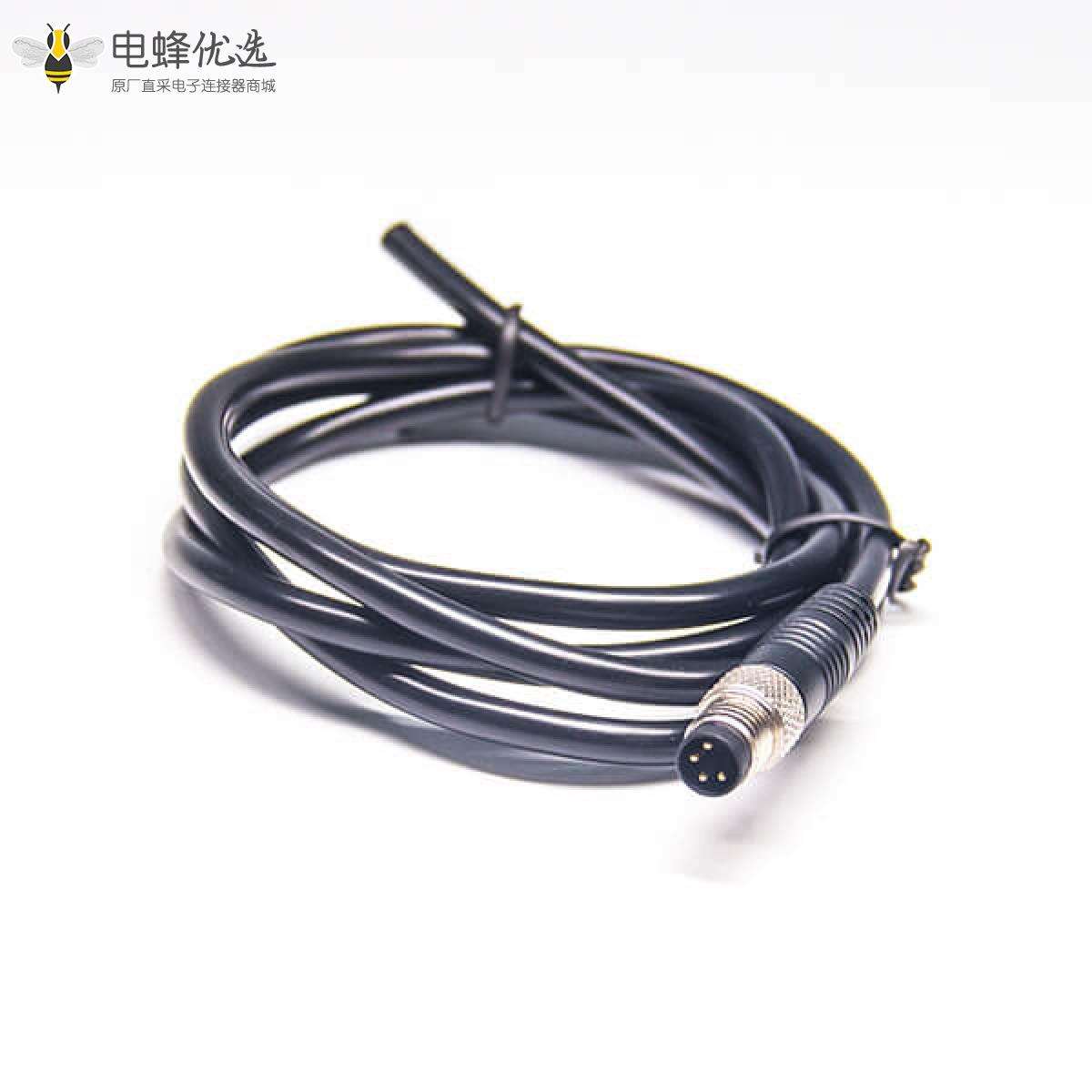 M8,A 编码,线束,4芯,公头,直式,焊线,不带屏蔽;