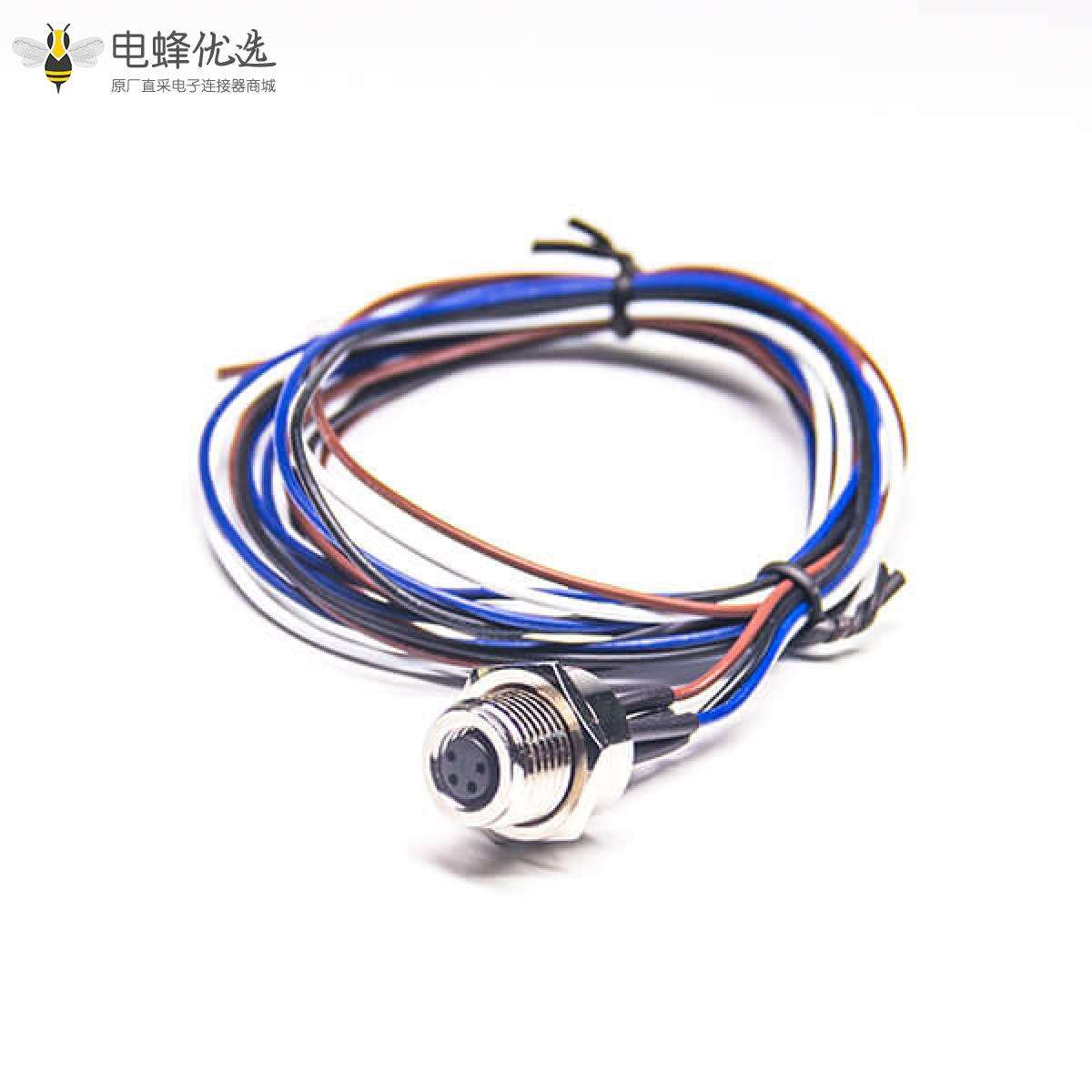 M8,A 编码,板端座子,前锁板,4芯,母头,直式,焊线;