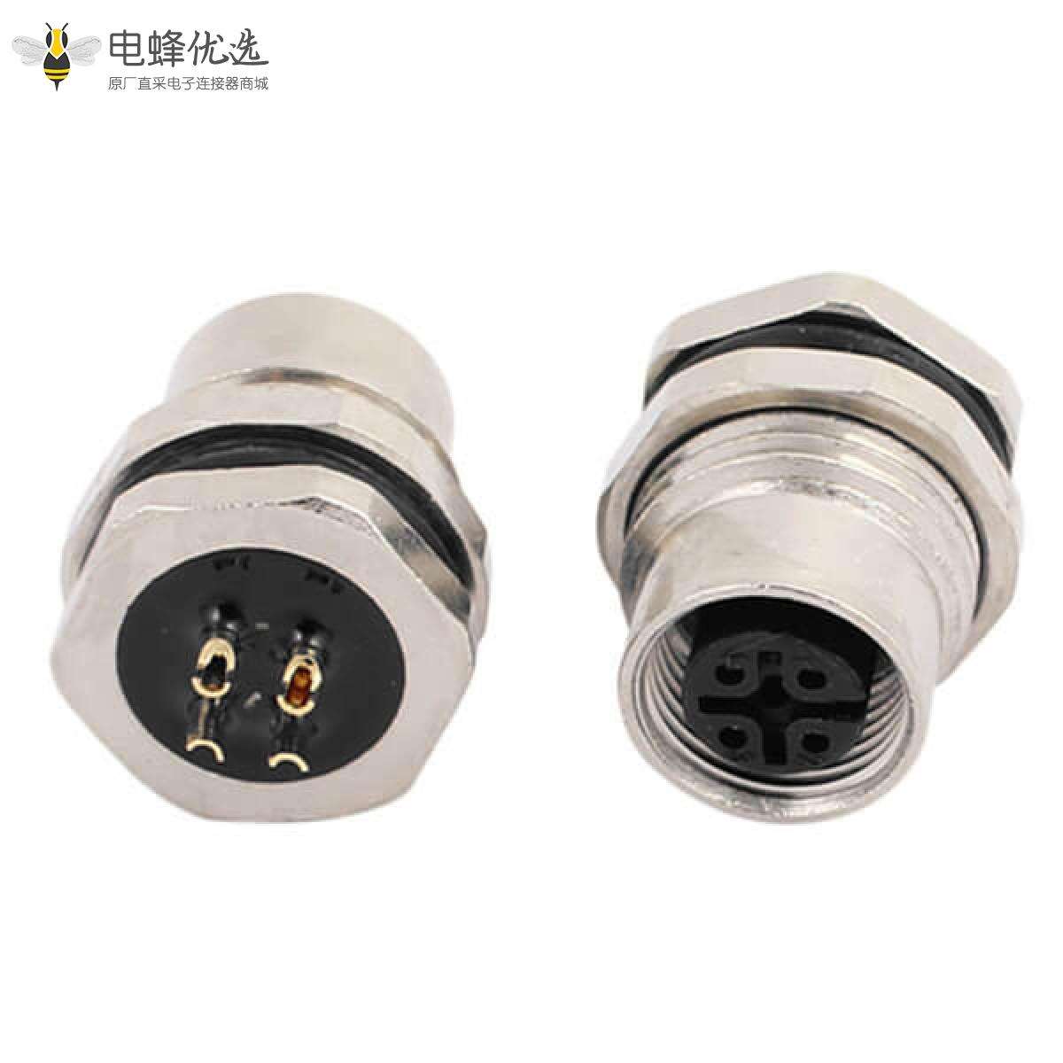 M12,A 编码,板端座子,前锁板,4芯,母头,直式,焊线;