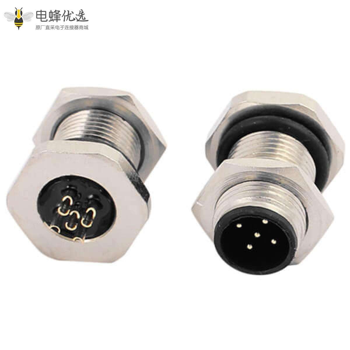M12,A 编码,板端座子,前锁板,5芯,公头,直式,焊线;