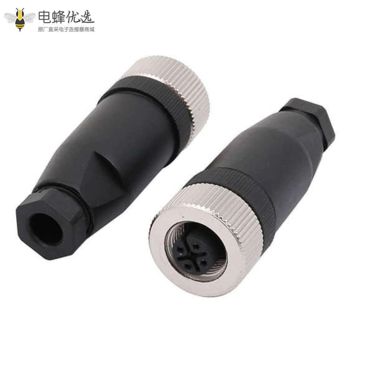 M12,A 编码,现场组装式,4芯,母头,直式,螺丝锁线,不带屏蔽;