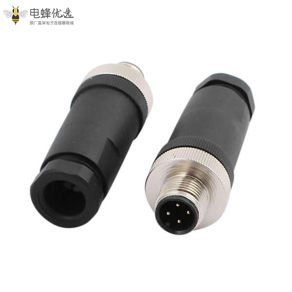 M12,A 编码,现场组装式,4芯,公头,直式,螺丝锁线,不带屏蔽;