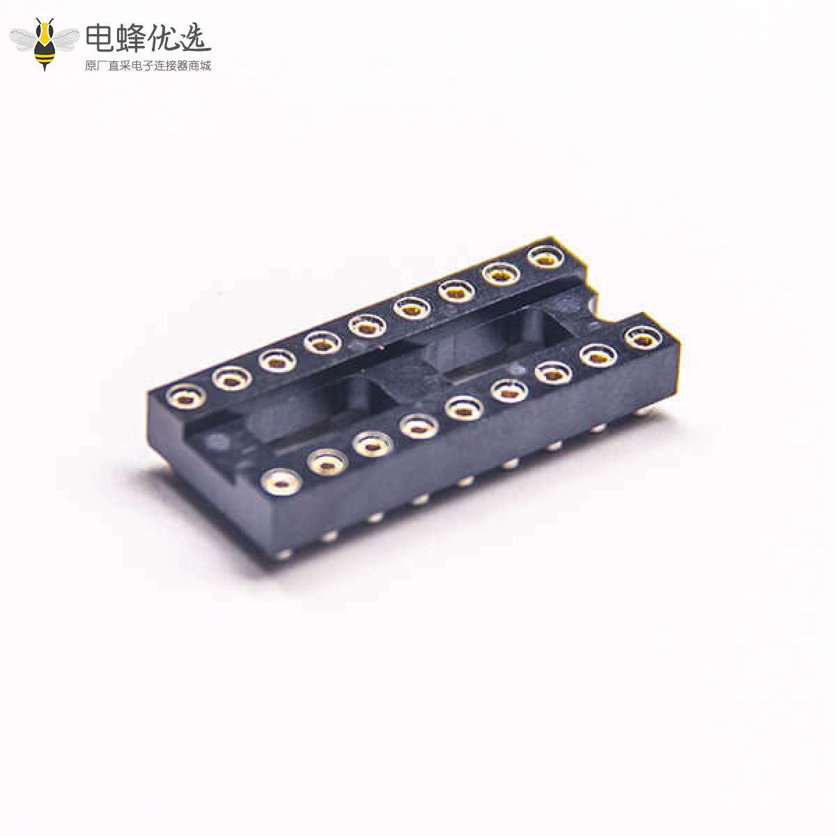 - 排母连接器,母头,直式,180度,18Pin,2.54mm,双排,圆孔,贴板,焊接,镀锡,黑色,H3.0mm,圆针;