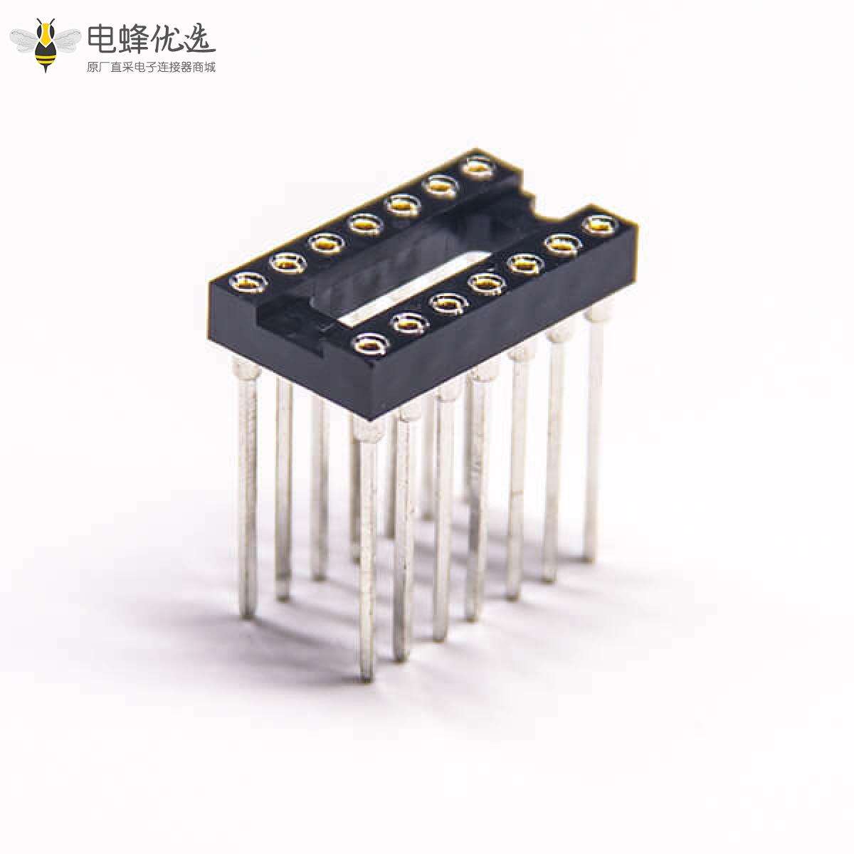- 排母连接器,母头,直式,180度,14Pin,2.54mm,单排,圆孔,插板,焊接,镀锡,黑色,H3.0mm,圆针;