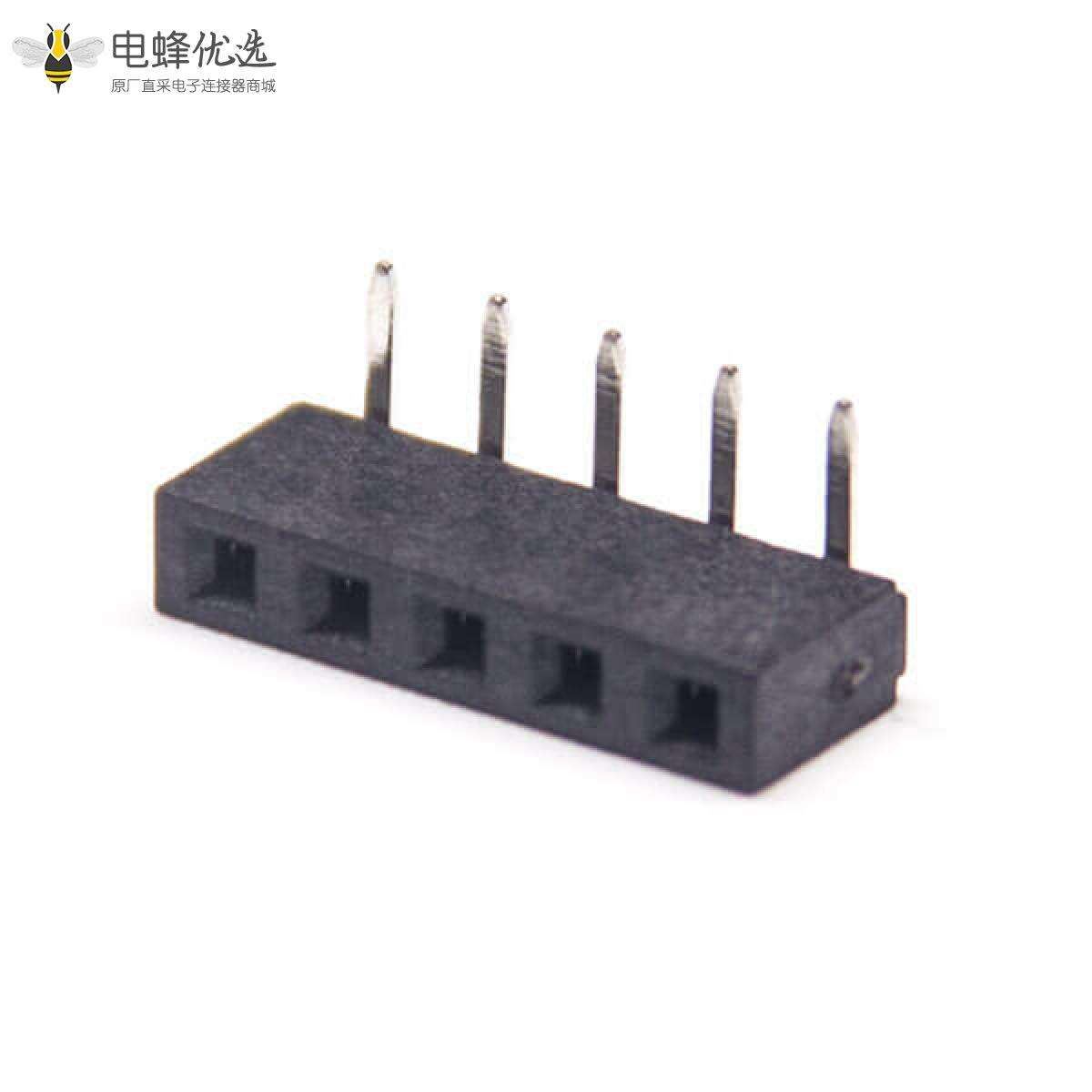 - 排母连接器,母头,直式,180度,5Pin,2.0mm,单排,插PCB板,焊接,镀锡,黑色,H4.3mm,方形;