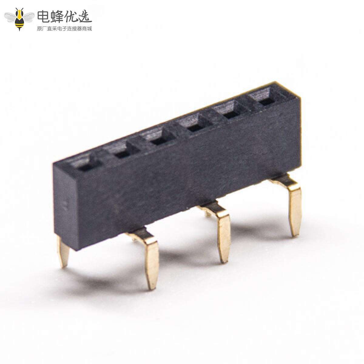 - 排母连接器,母头,直式,180度,6Pin,2.54mm,单排,插板,焊接,镀金,黑色,H5.0mm,方形;
