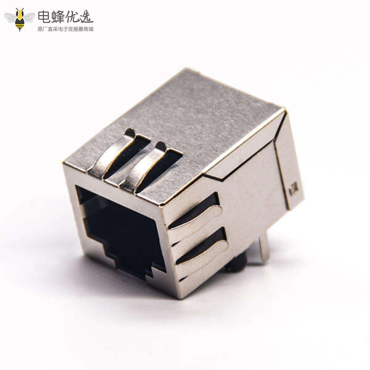 RJ45插座,8P8C,单端口,1*1,弯式90°,触头镀金,插孔,PCB板安装,带屏蔽,不带灯,不带滤波;