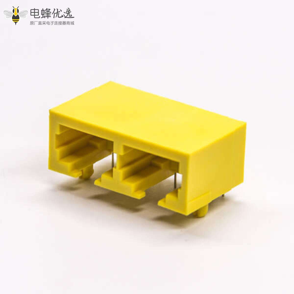 双口rj45插座黄色弯式8p8c网络端口不带屏蔽不带灯
